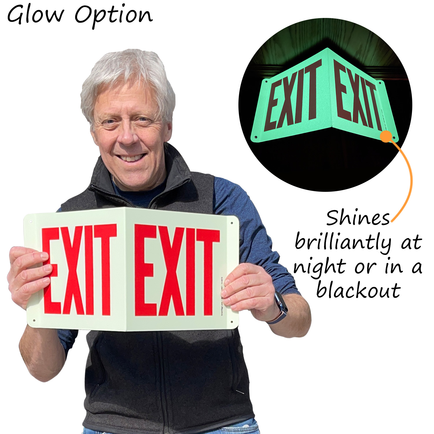 Glow-in-Dark Projecting Exit Sign, 8in. x 9in.: EXIT (6" high letters) - big size S-4673