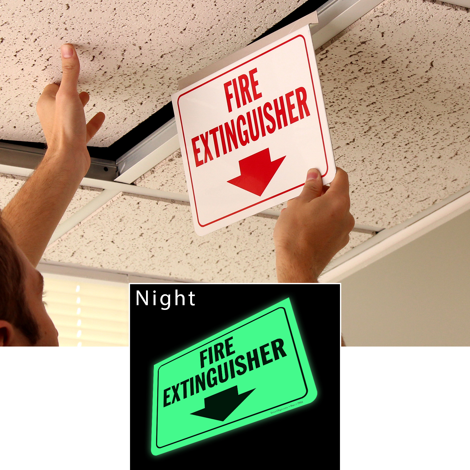 These signs are extremely easy to install in the drop ceiling tiles. A bright white sign and the company was quick to deliver. Very pleased with MySafetySign.com service.