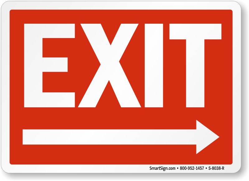 Consider the importance of marking important areas of your facility. Place this sign with a right arrow symbol and point towards the exit area.