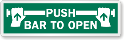 Ensure safety and compliance with our durable "Push Bar To Open" label, ideal for clear and effective emergency exit instructions.