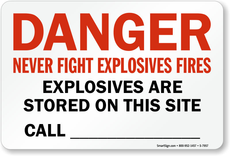 When explosives are stored on your site, make sure no one tries to fight the fire. Everyone should clear the area immediately.