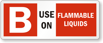 Fire Extinguisher Label: Class Label - 'B' Use On Flammable Liquids Learn More...