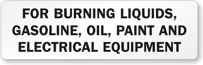 Fire Extinguisher Label: For Burning Liquids, Gasoline, Oil, Paint And Electrical Equipment Learn More...