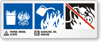 Symbols make it easy to understand the fire extinguisher class. In an emergency, it is important to quickly classify the type of fire and appropriate fire extinguisher type.