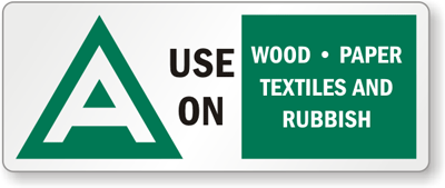 Fire Extinguisher Label: Class Label - 'A' Use On Wood, Paper, Textiles And Rubbish Learn More...