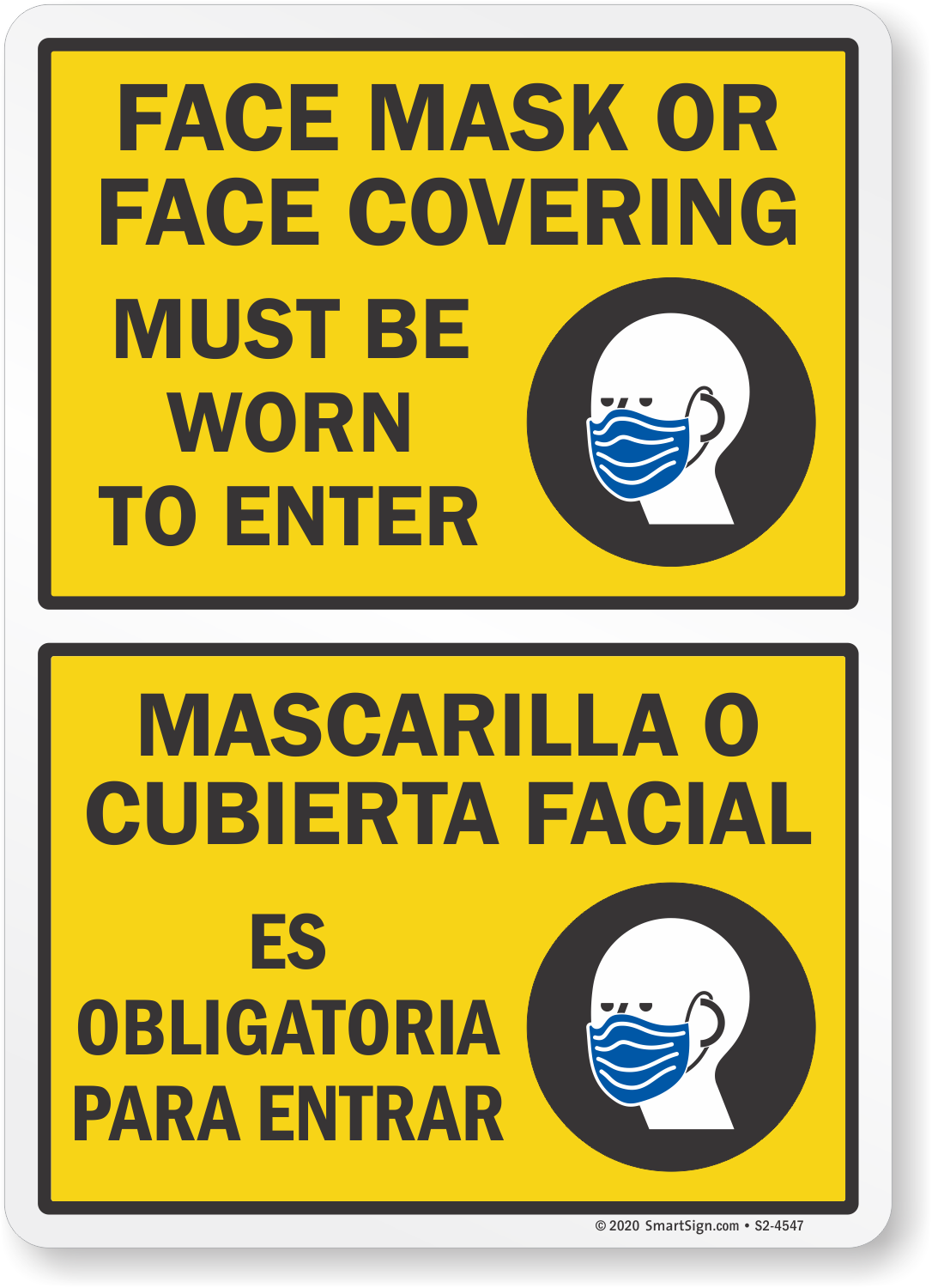 Bilingual Social Distancing Sign: Face Mask Or Face Covering Must Be Worn To Enter S2-4547