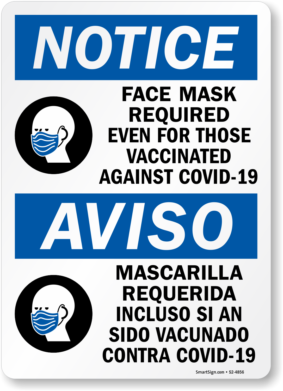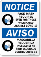 Bilingual Vaccine Site Sign: Notice - Face Mask Required Even For Those Vaccinated S2-4856