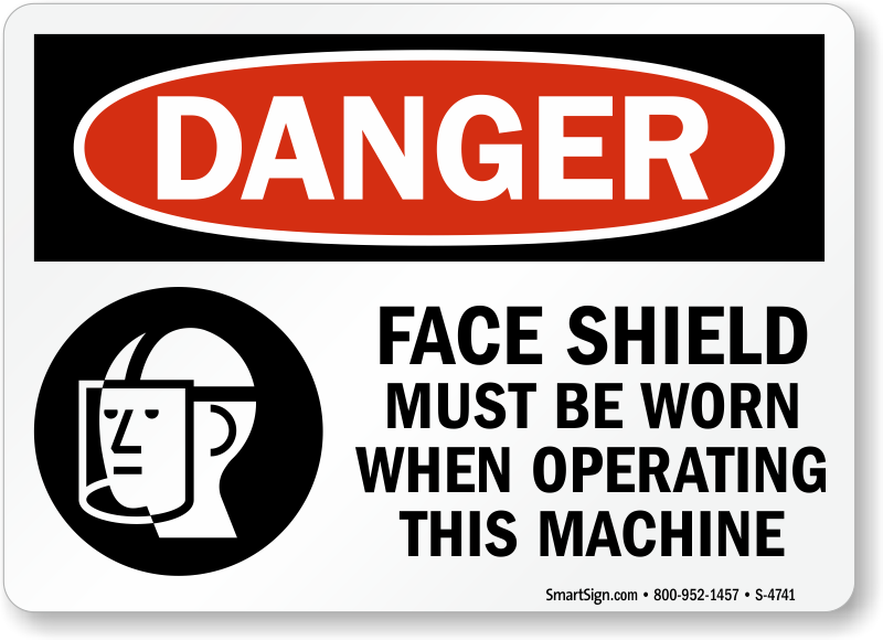 Emphasize upon the importance of wearing a face shield while operating the machine by posting this OSHA danger sign with a relevant graphic.