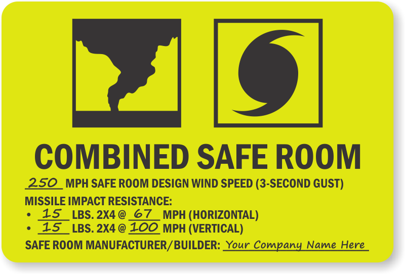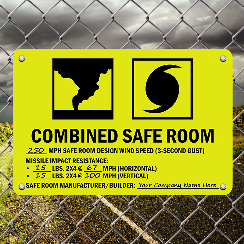 FEMA Safe Room Sign: Combined Safe Room (Write-in Wind Speed And Builder Name) S2-1931 Learn More...