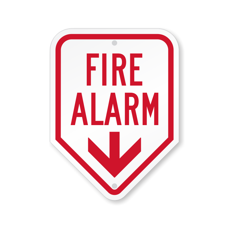 Fire Alarm Sign: Fire Alarm (with Down Arrow) Learn More...