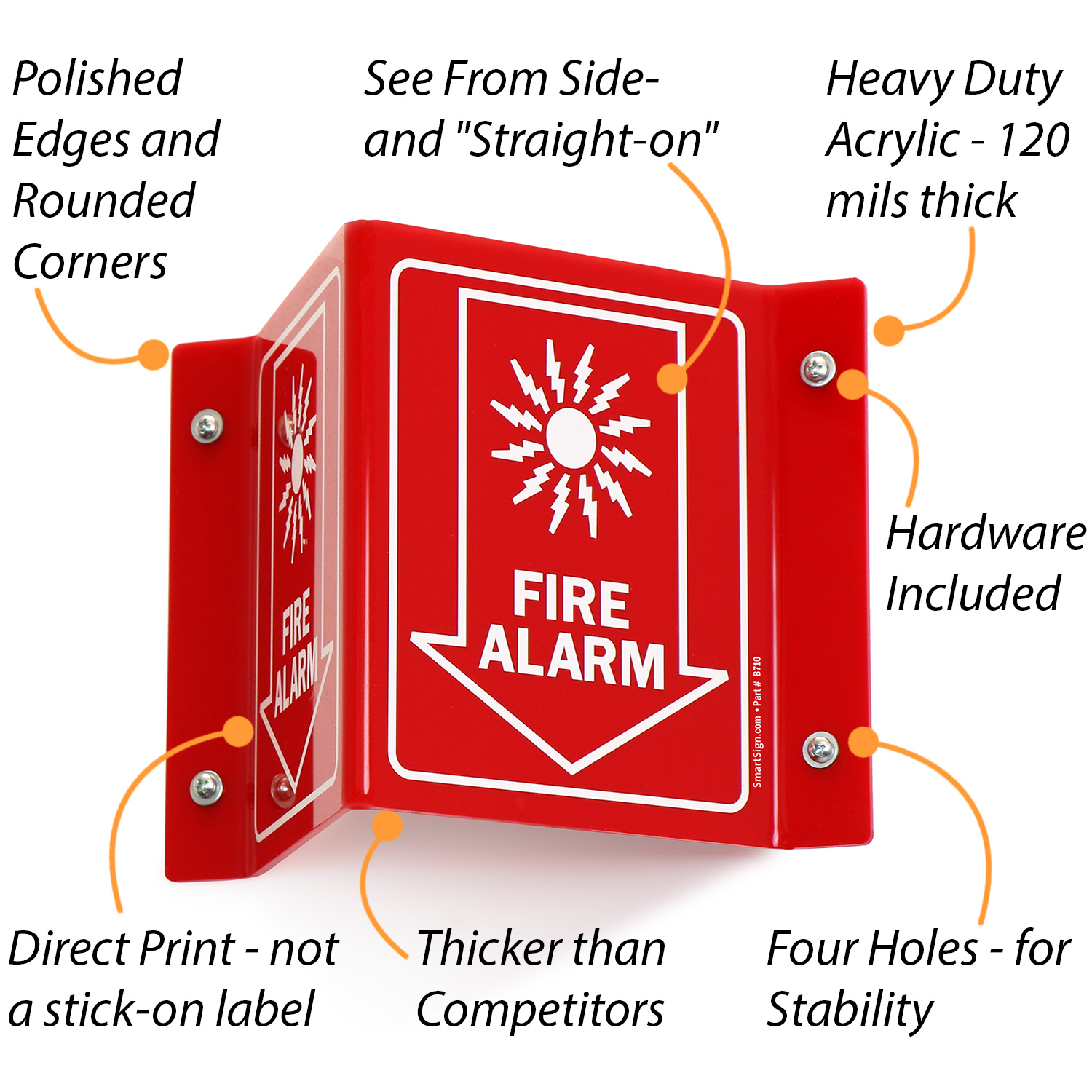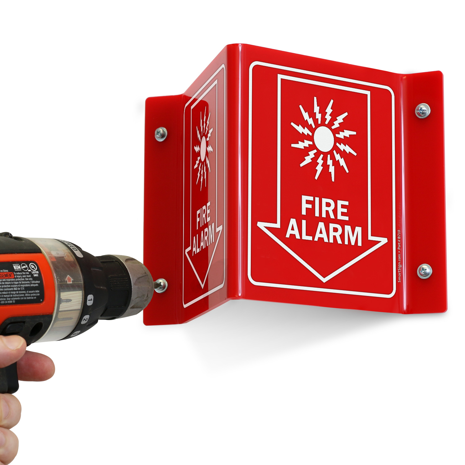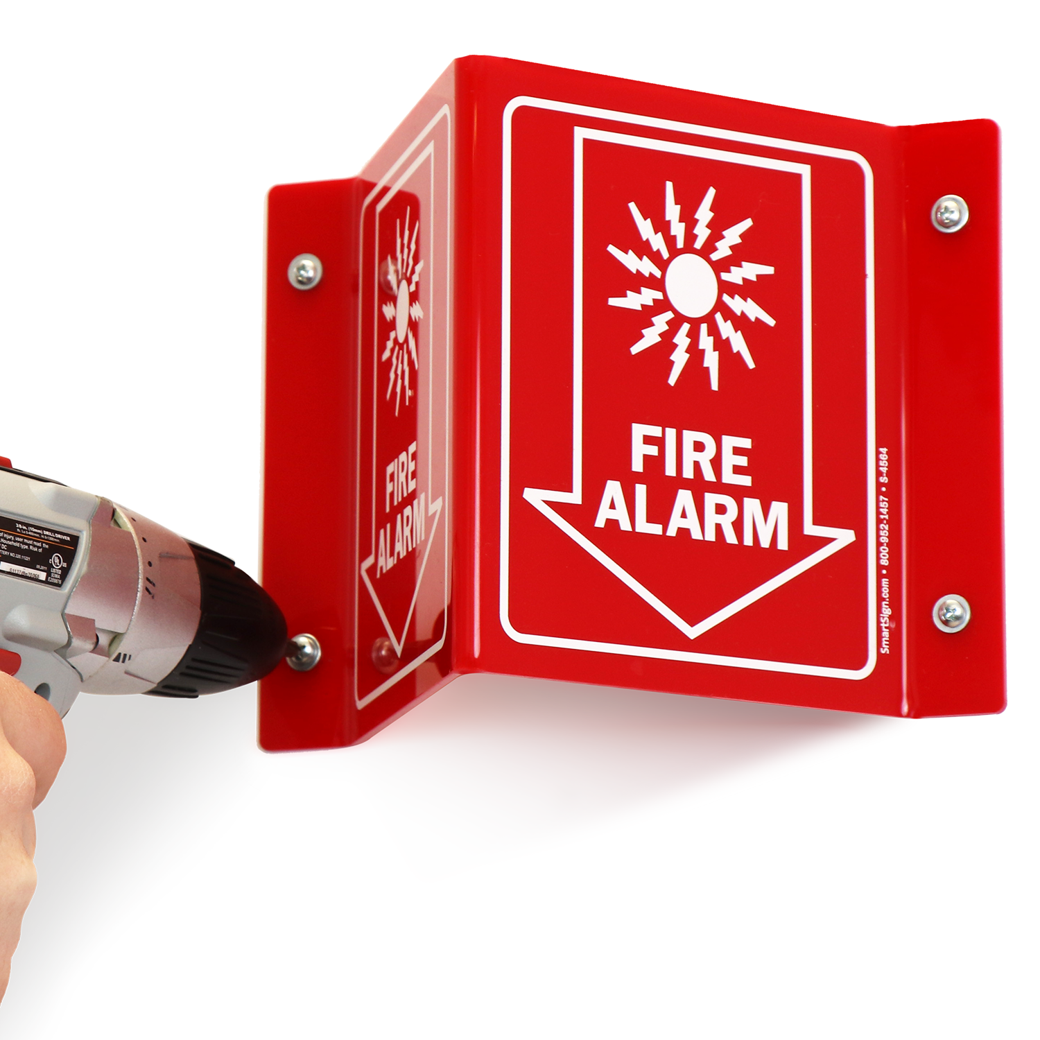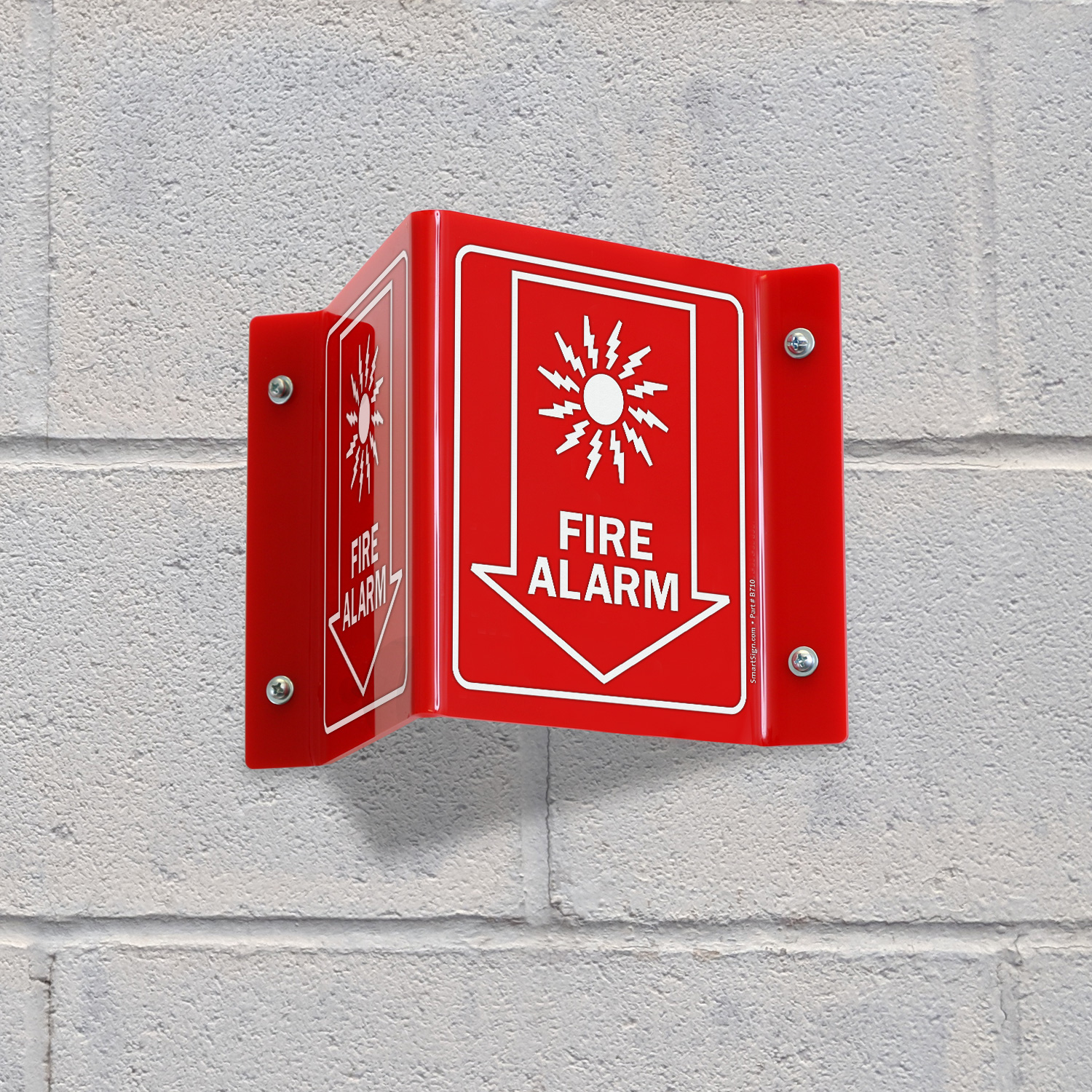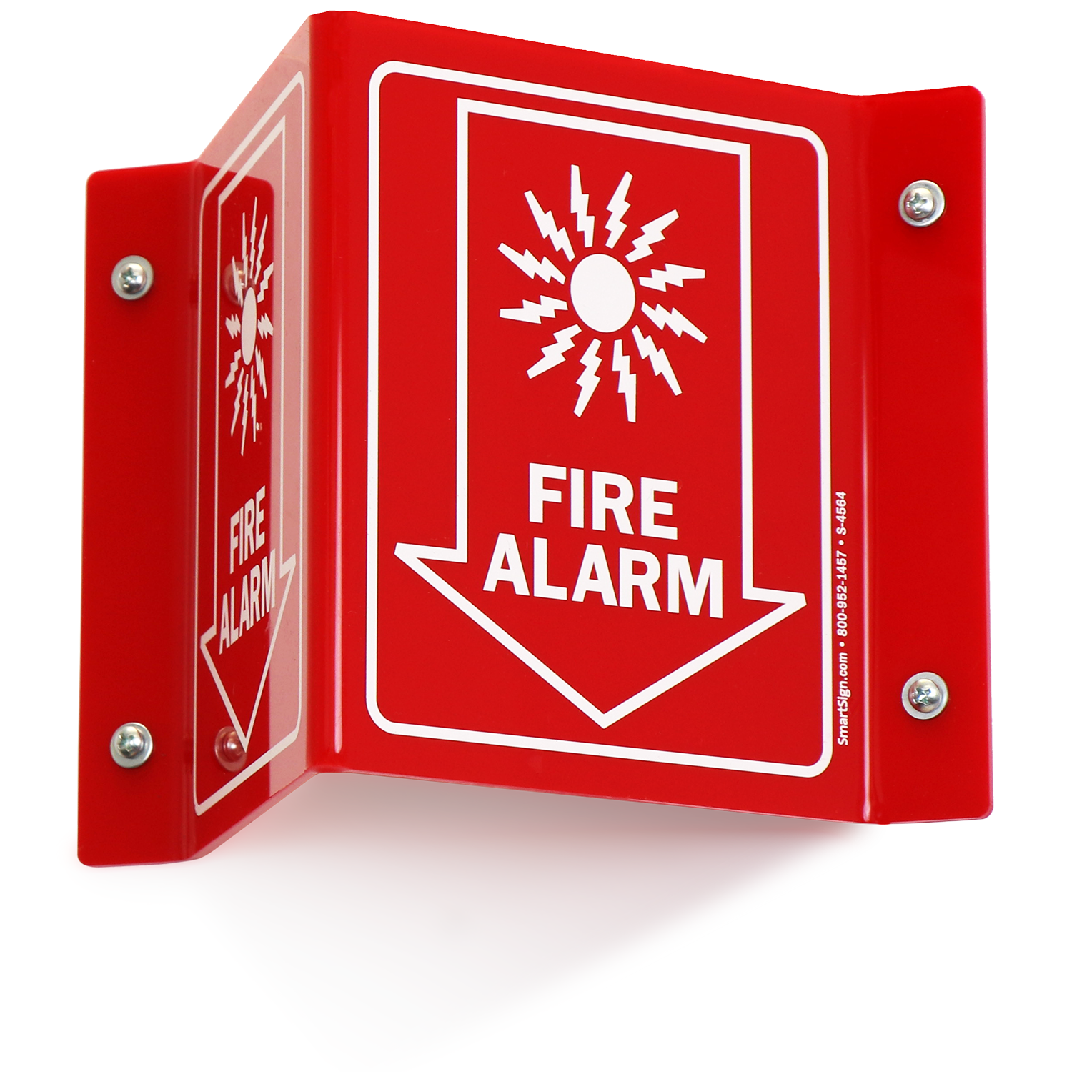 Use a "fire alarm (with graphic and arrow)" sign. Signs are effective.