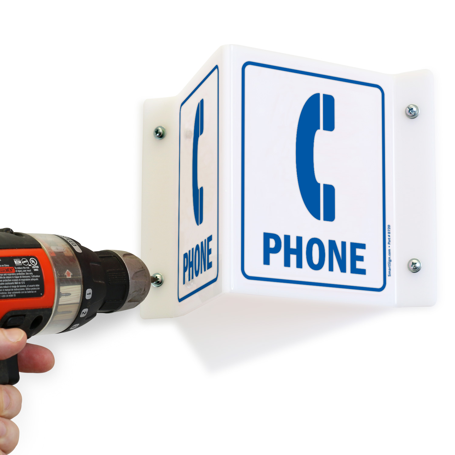 Use a "phone (with graphic)" sign. Give safety a hand - with a sign.
