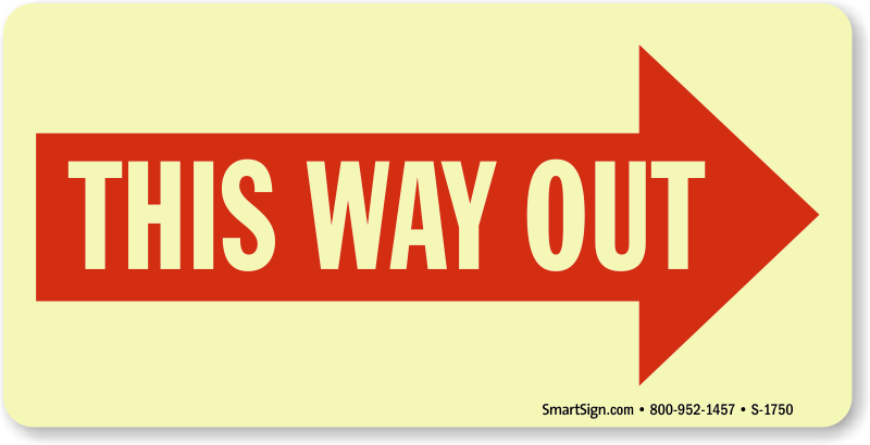 Make fire safety a priority. Use a "this way out (arrow right)" sign. A sign is proven and effective.