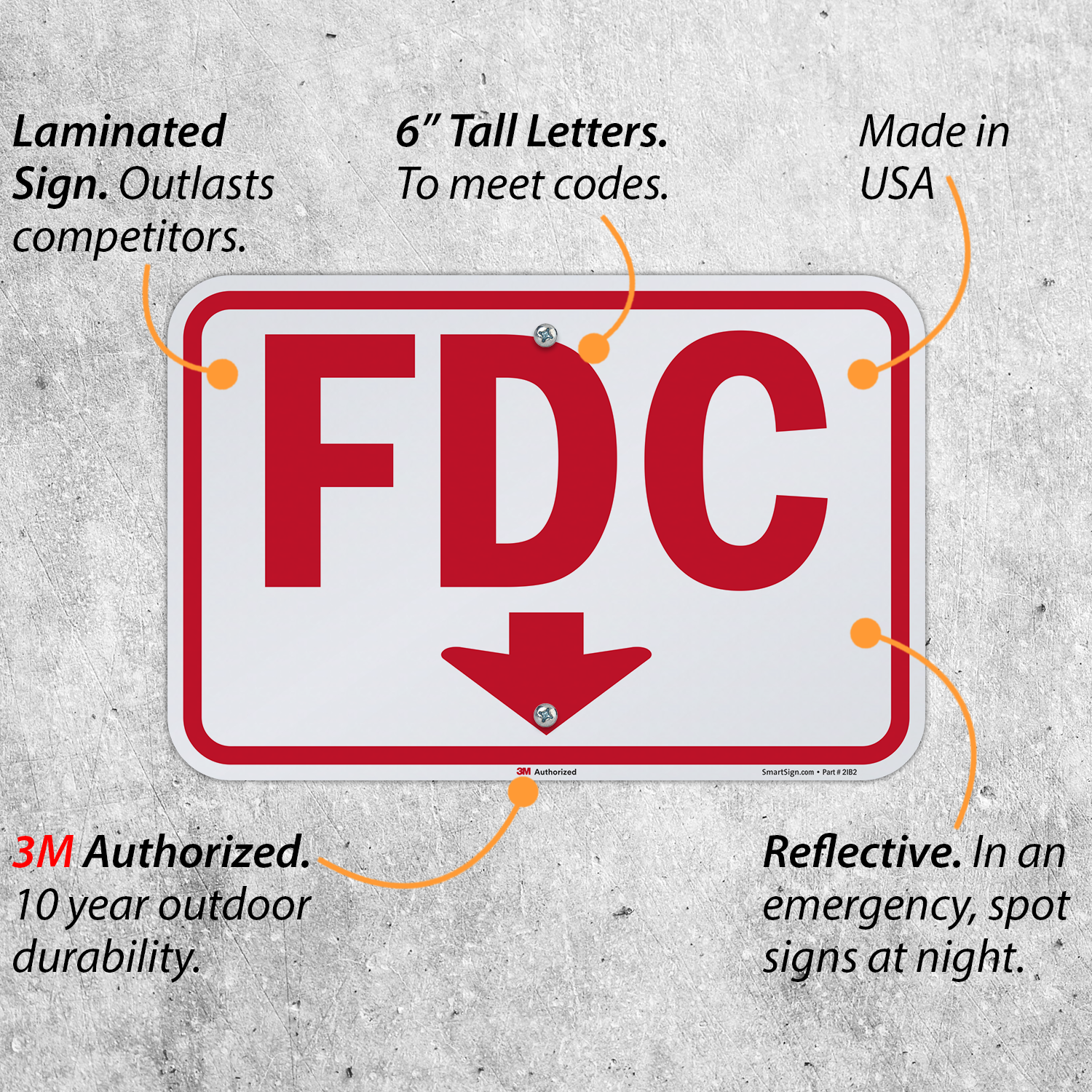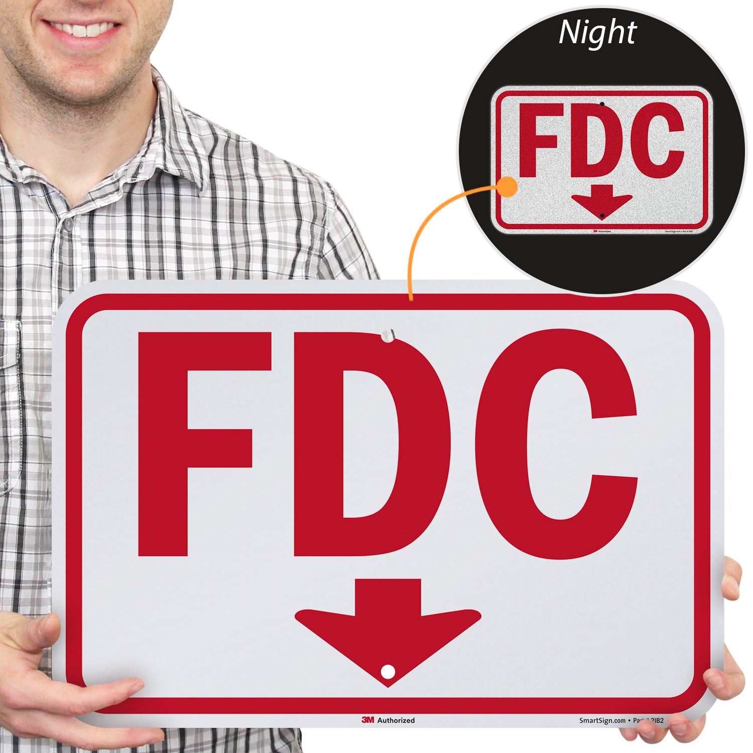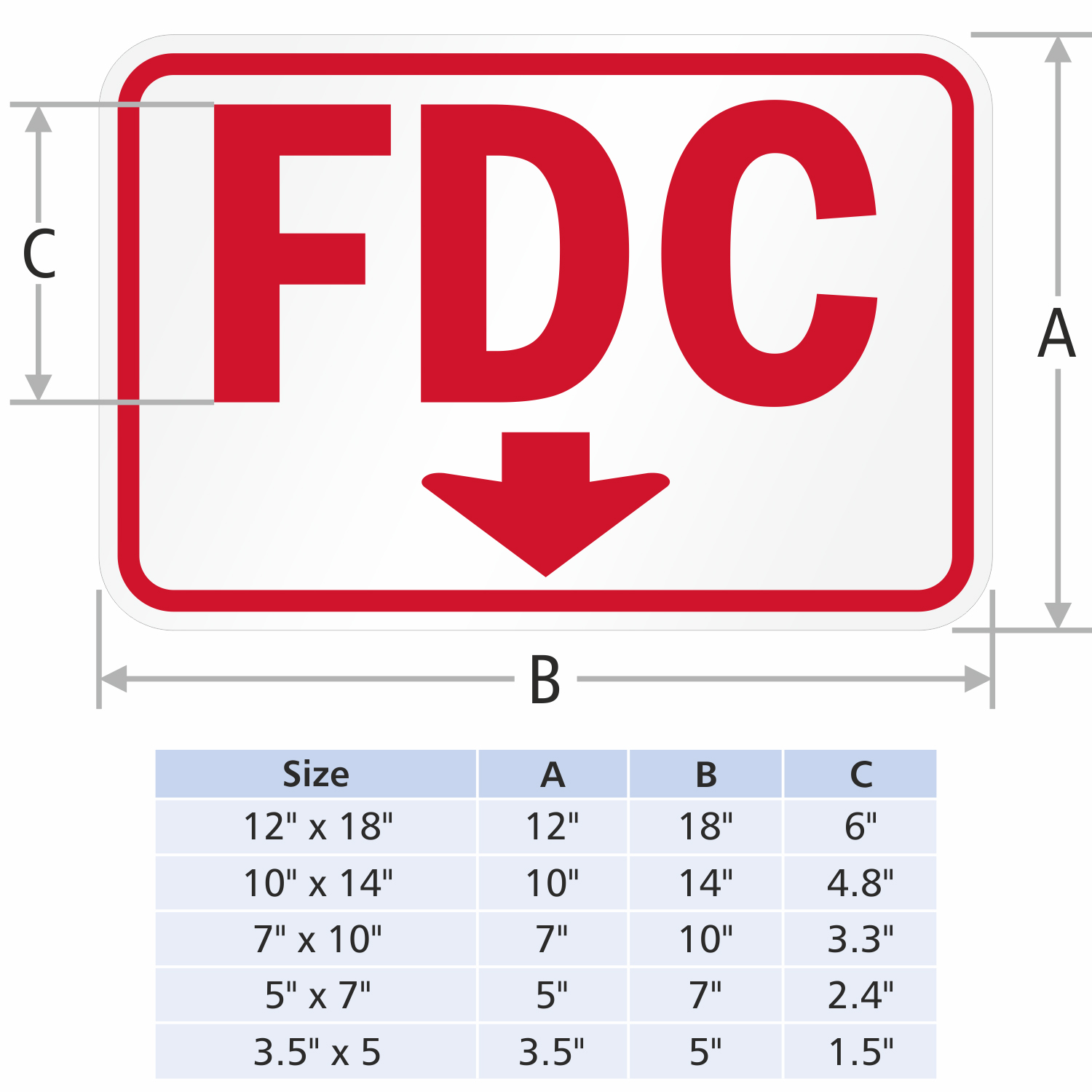 Fire Department Connection Sign: FDC (With Downward Pointing Arrow) K-8238 Learn More...