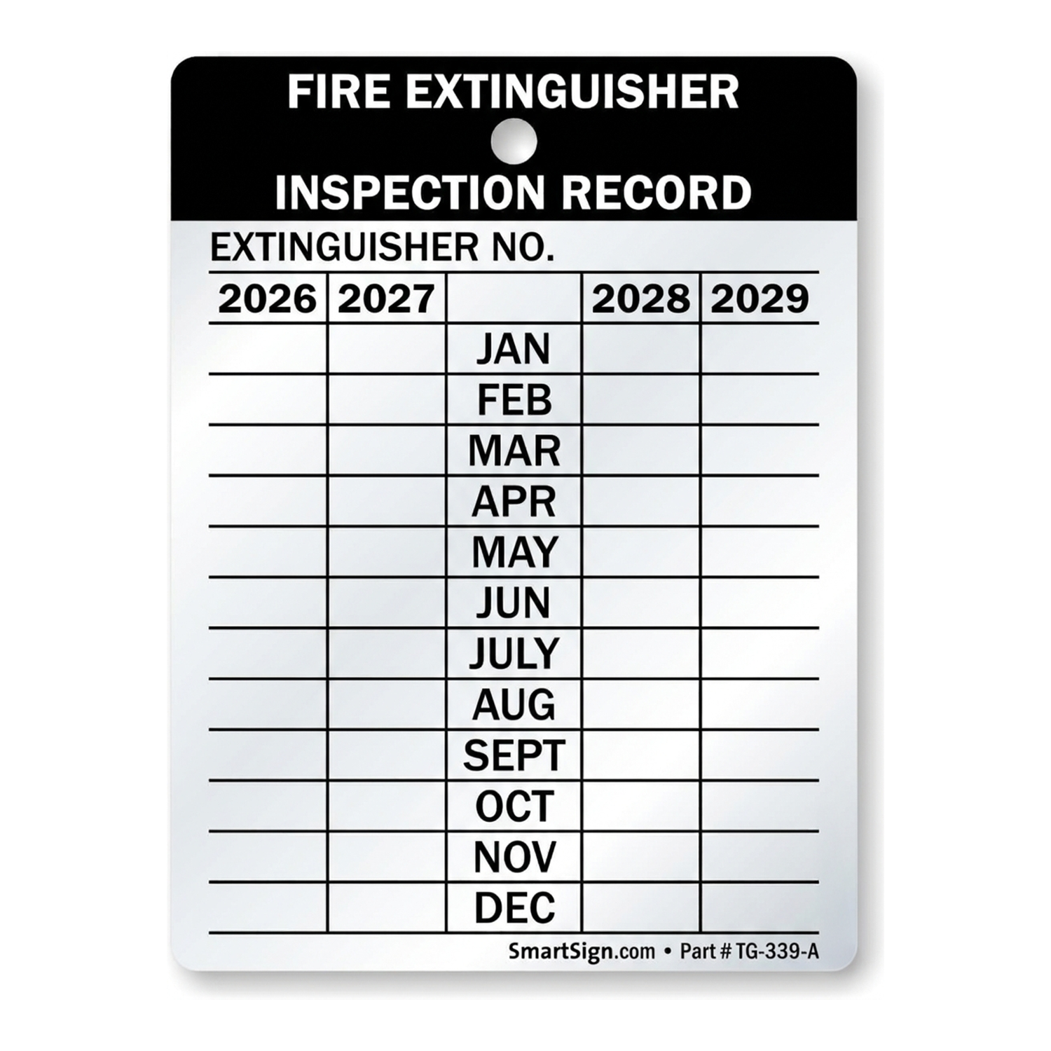 Made of heavy duty metal, our Fire Extinguisher Maintenance Tags offer the best quality, yet are extremely affordable. Use these products to make a record of your inspections. Write on the tag with a permanent pen, or use a hole punch to punch out the month of the inspection.