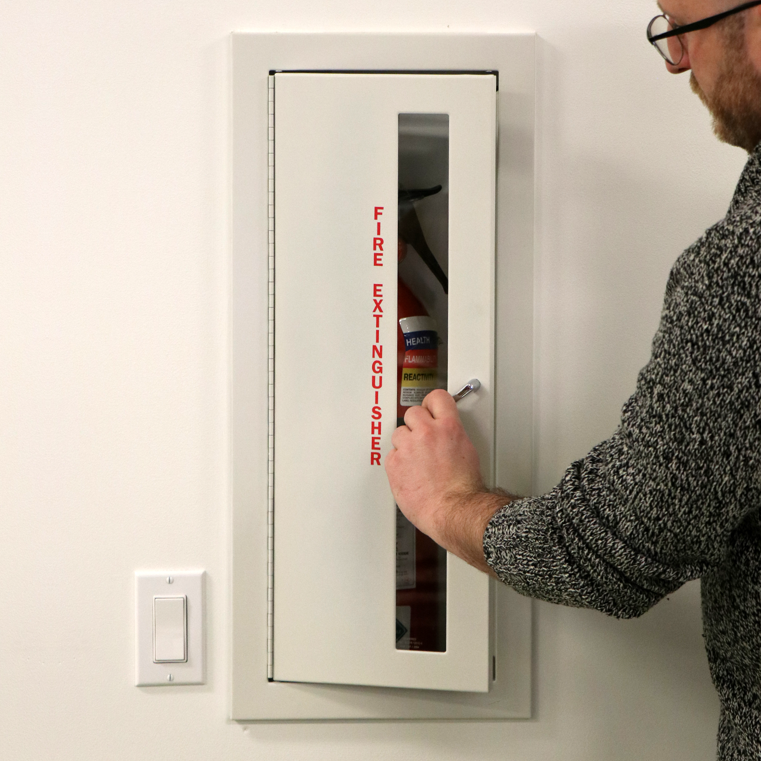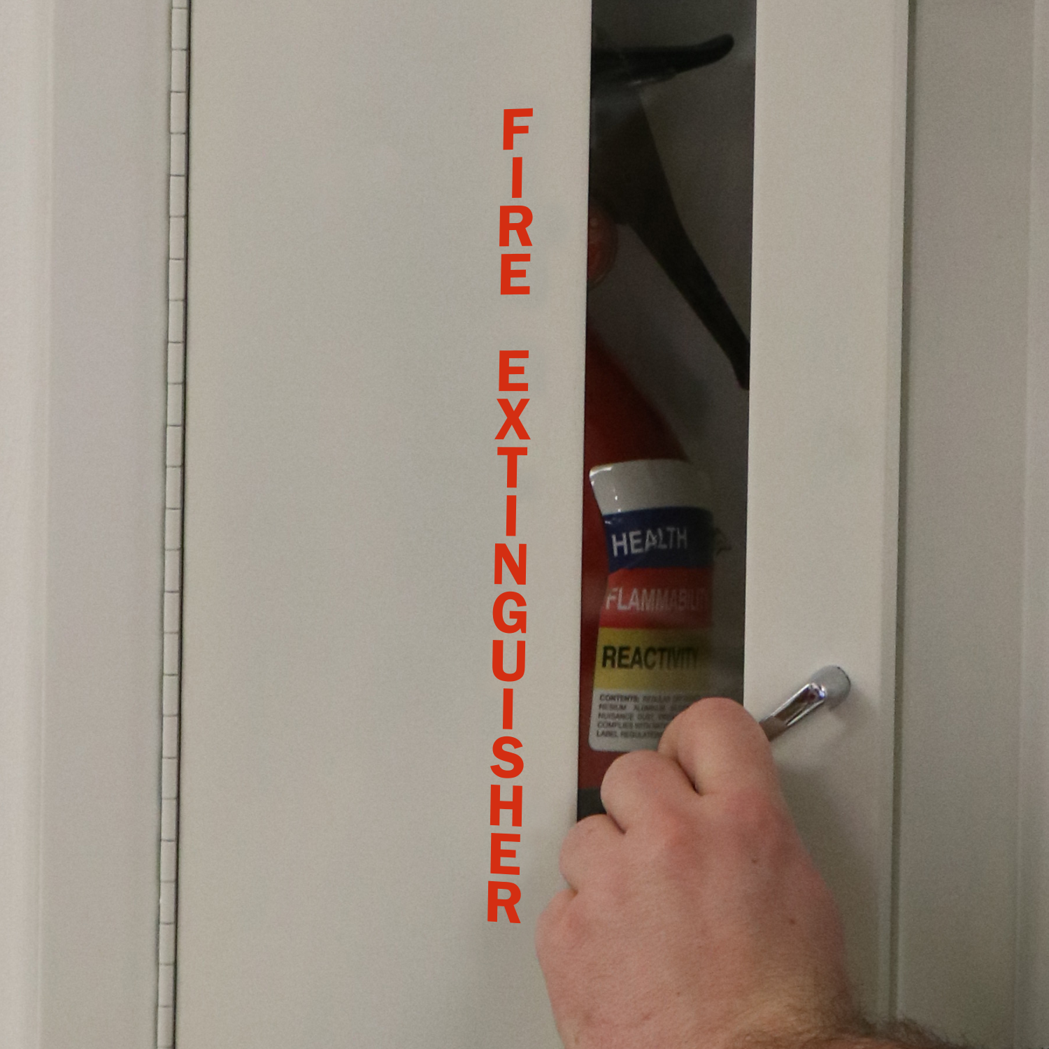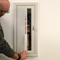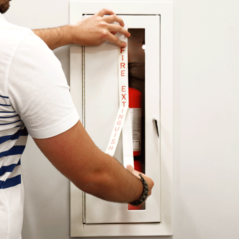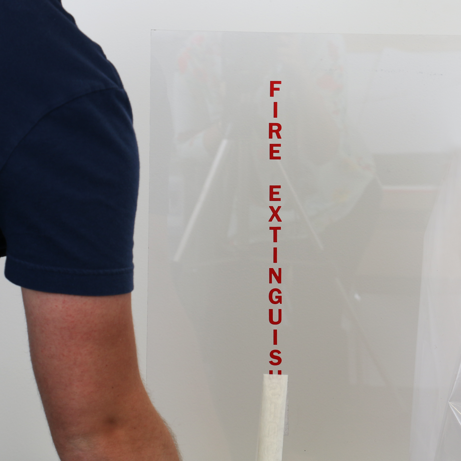 Keep your workplace safe from fire with this Fire Extinguisher die cut glass window decal and help people quickly find a fire extinguisher during emergency.