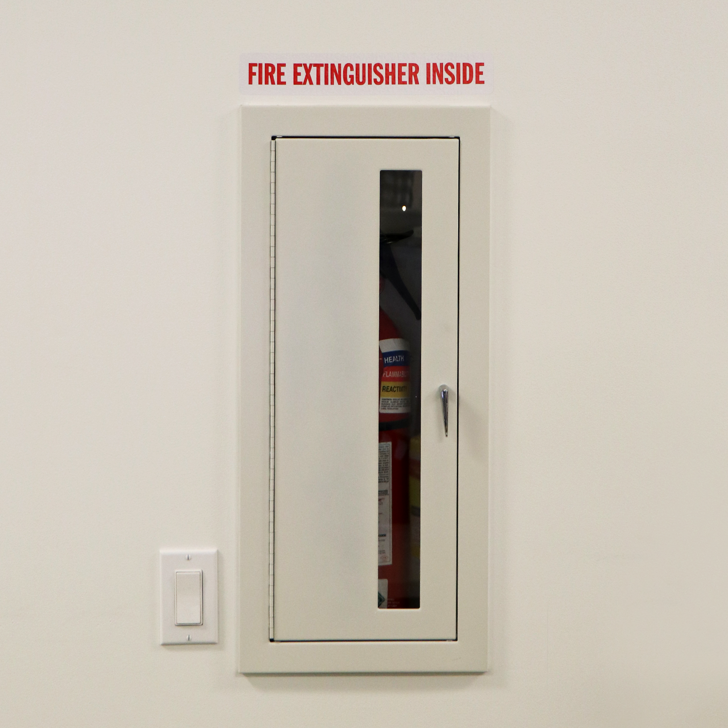 Fire equipment labels convey vital information. In fire, seconds may count. Use a 'Fire Extinguisher Inside' label and give everyone the information they need.