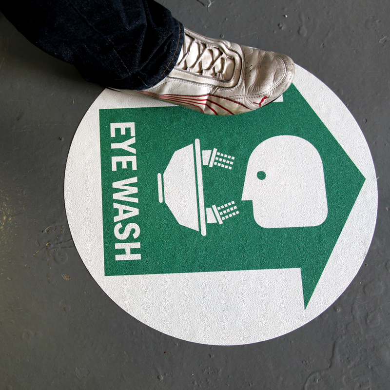 Eye Wash areas can be marked in more places than one. Put a sign on the floor with this large-sized floor sign, ideal for large industrial facilities and laboratories.
