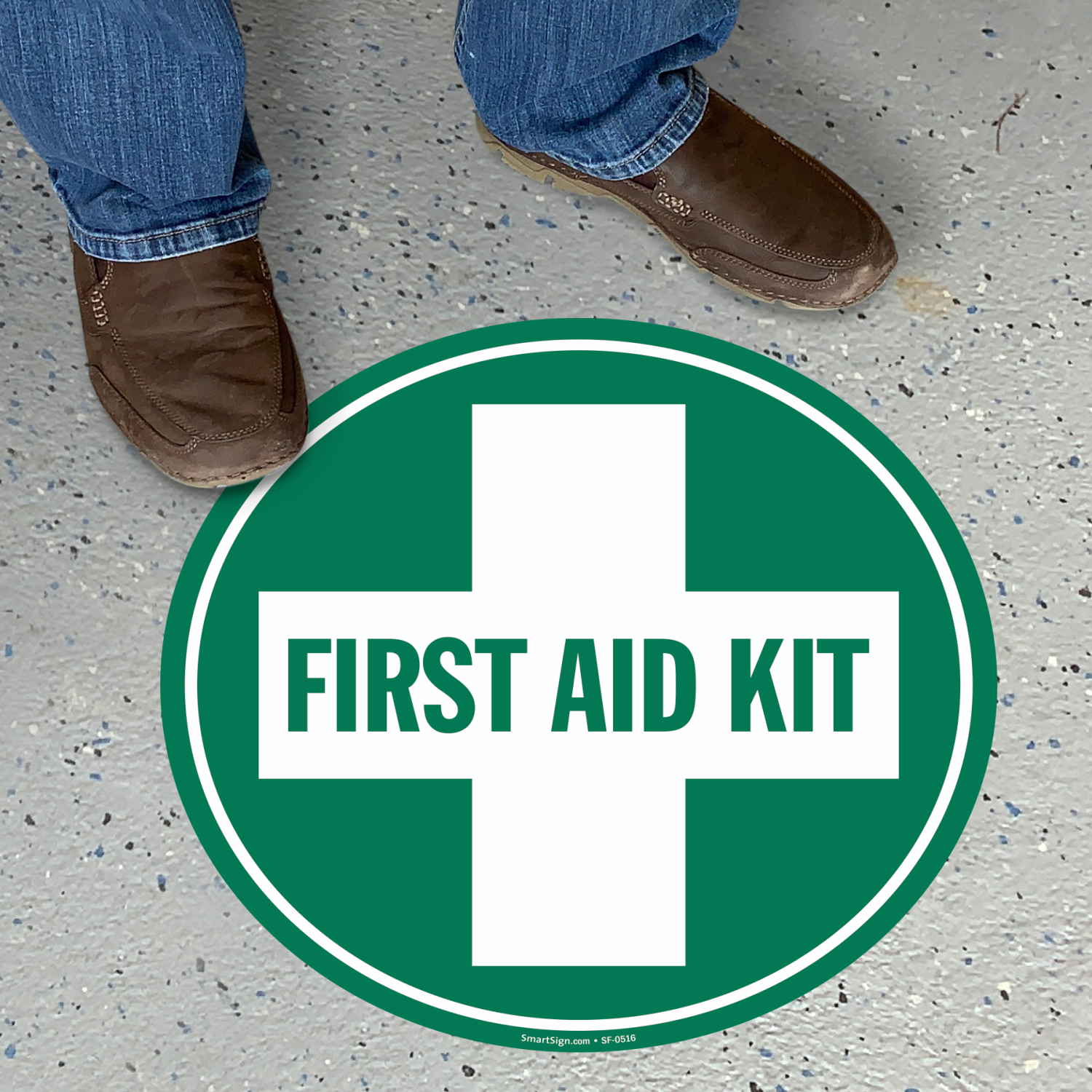 SlipSafeâ„¢ Circular Floor Sign: First Aid Kit