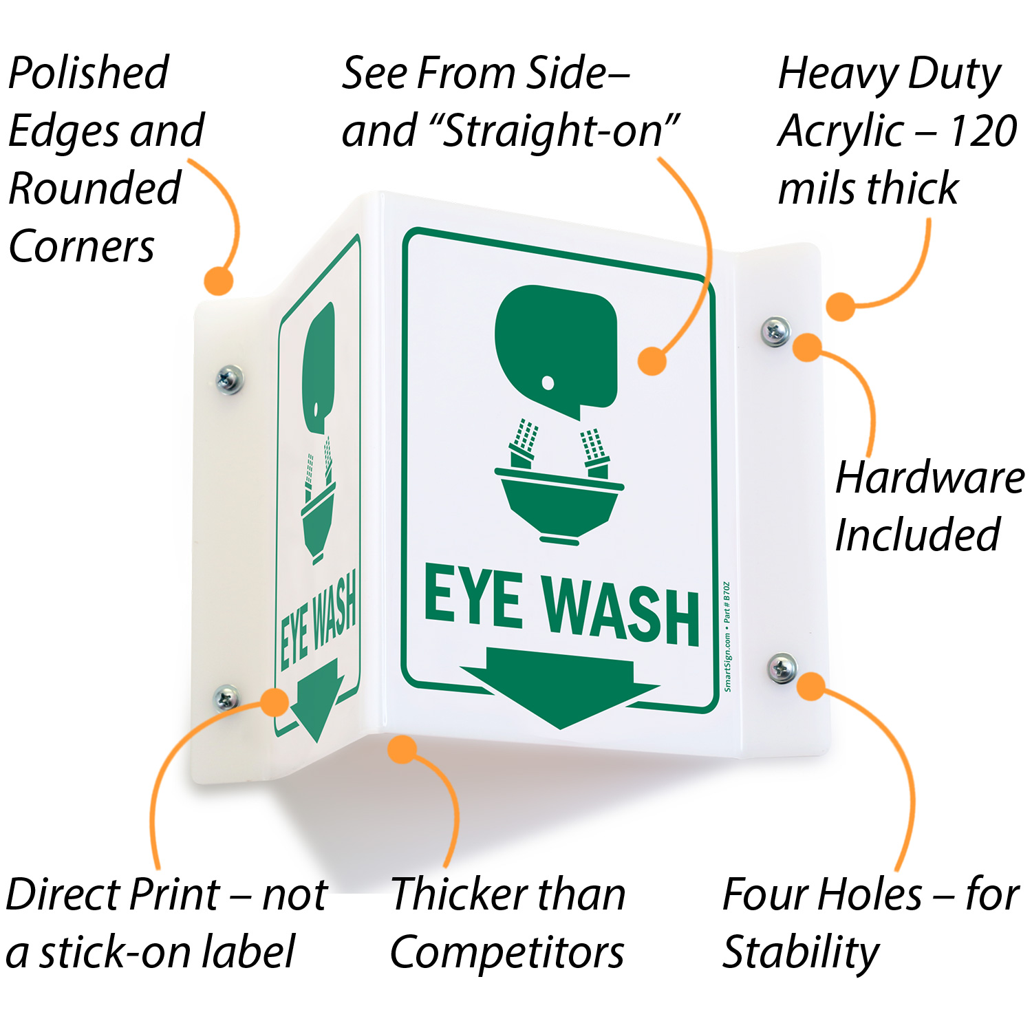 Size: 6" x 5" Material Type: Projecting V-Shape Acrylic Sign Verified PurchaseGreat!
