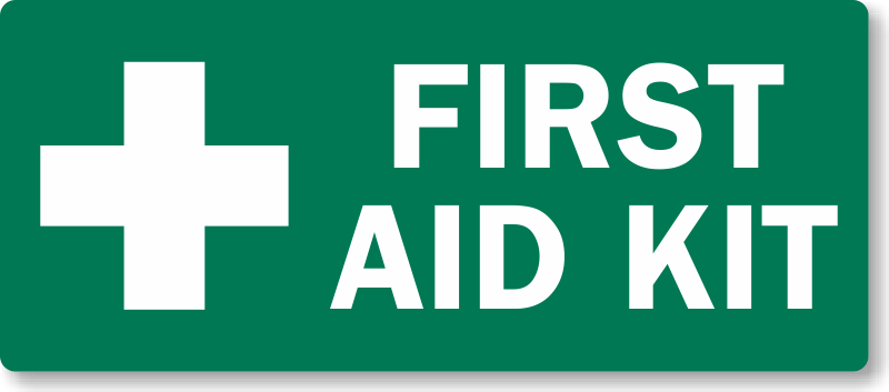 Clearly identify the first aid gear. Use a "first aid kit" sign. Make sure that you are prepared.
