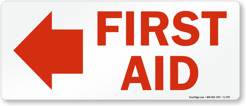 Use a "first aid (arrow left)" sign. A sign emphasizes your attention to safety.