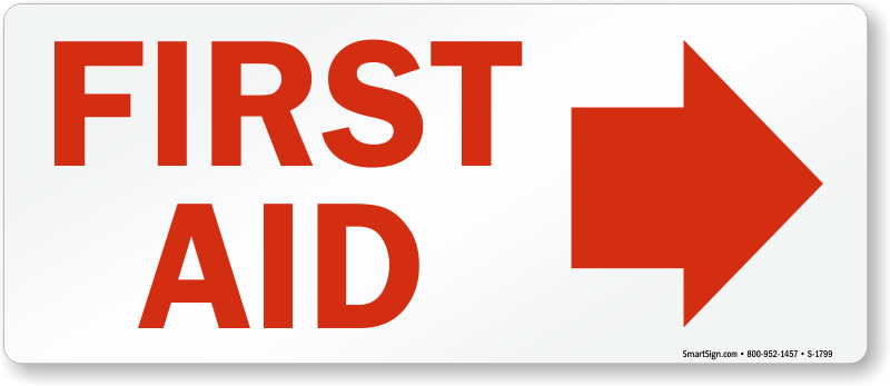 Use a "first aid (arrow right)" sign. Signs make an important point.
