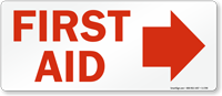 First Aid Sign: First Aid with Arrow Right Learn More...
