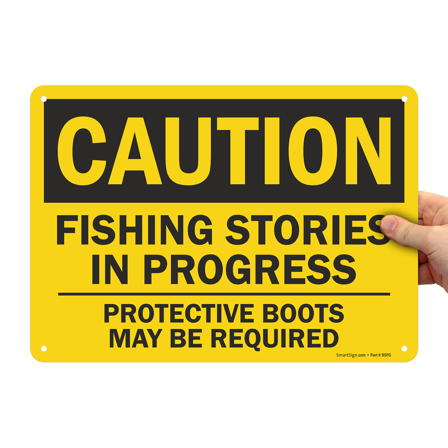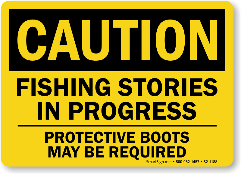 Up for another fishing anecdote? Use this humorous OSHA Caution Sign to remind people to wear protective boots while fishing.