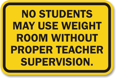 Weight Room Rules Sign: No Student May Use Weight Room Without Supervision K-4026 Learn More...