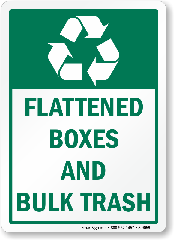 Because flattened boxes and bulk trash require specialty pickup, post this recycling sign to help ensure those items are separated from other recyclables.