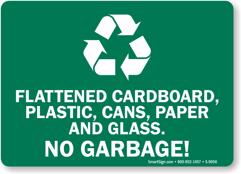 Many people need signs to be informed or reminded that cardboard, plastic, cans, paper, and glass are not trash but recyclables, and that garbage should not be thrown into the same bin.