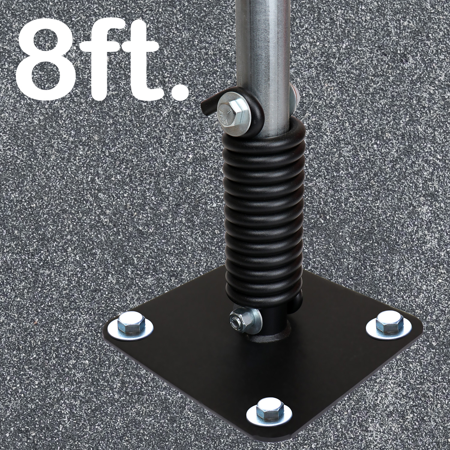 8 ft post and included hardware are designed for asphalt installations.