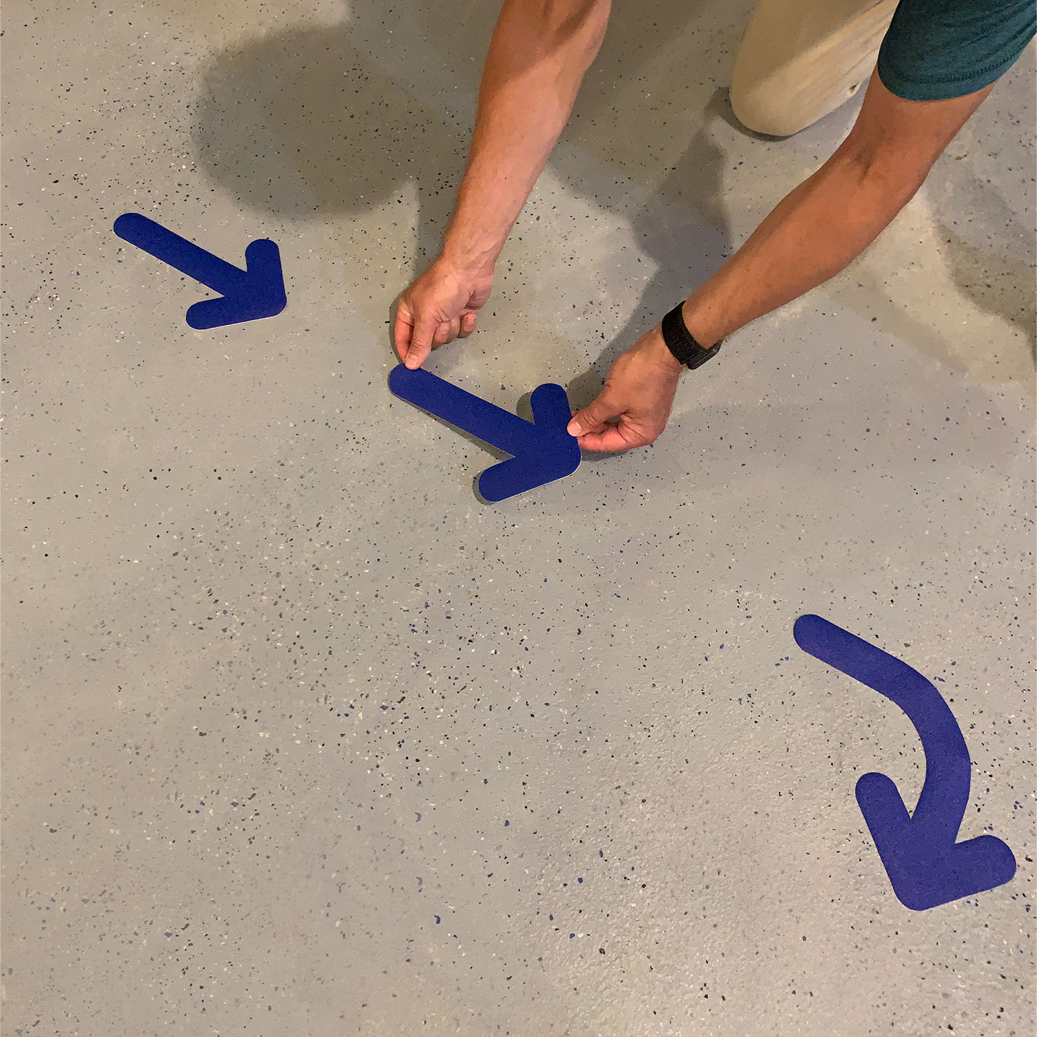 - Adhesive arrows easily stick to smooth floor surfaces and low ply commercial carpets.