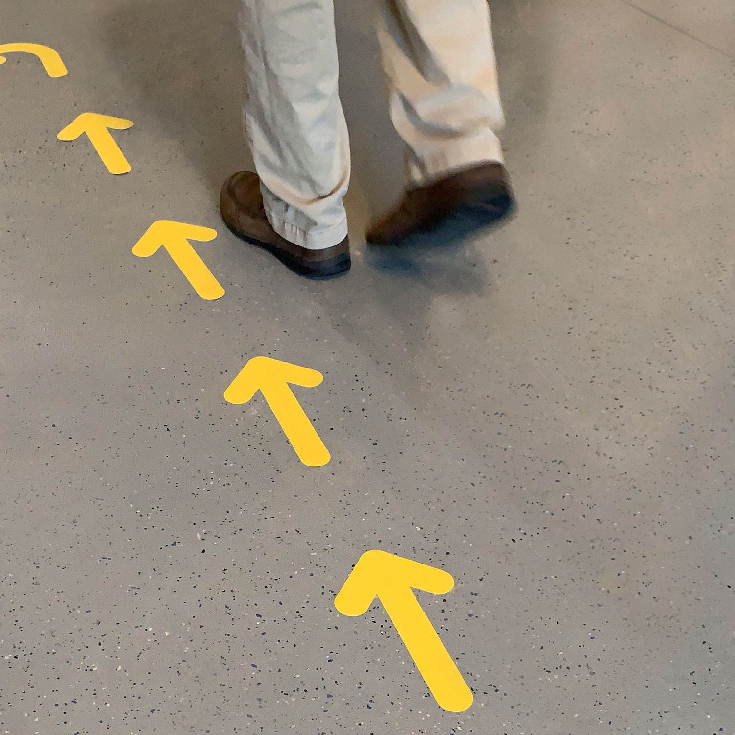 Keep pedestrians on the right track! Design a complete path using adhesive arrow stickers for floor.