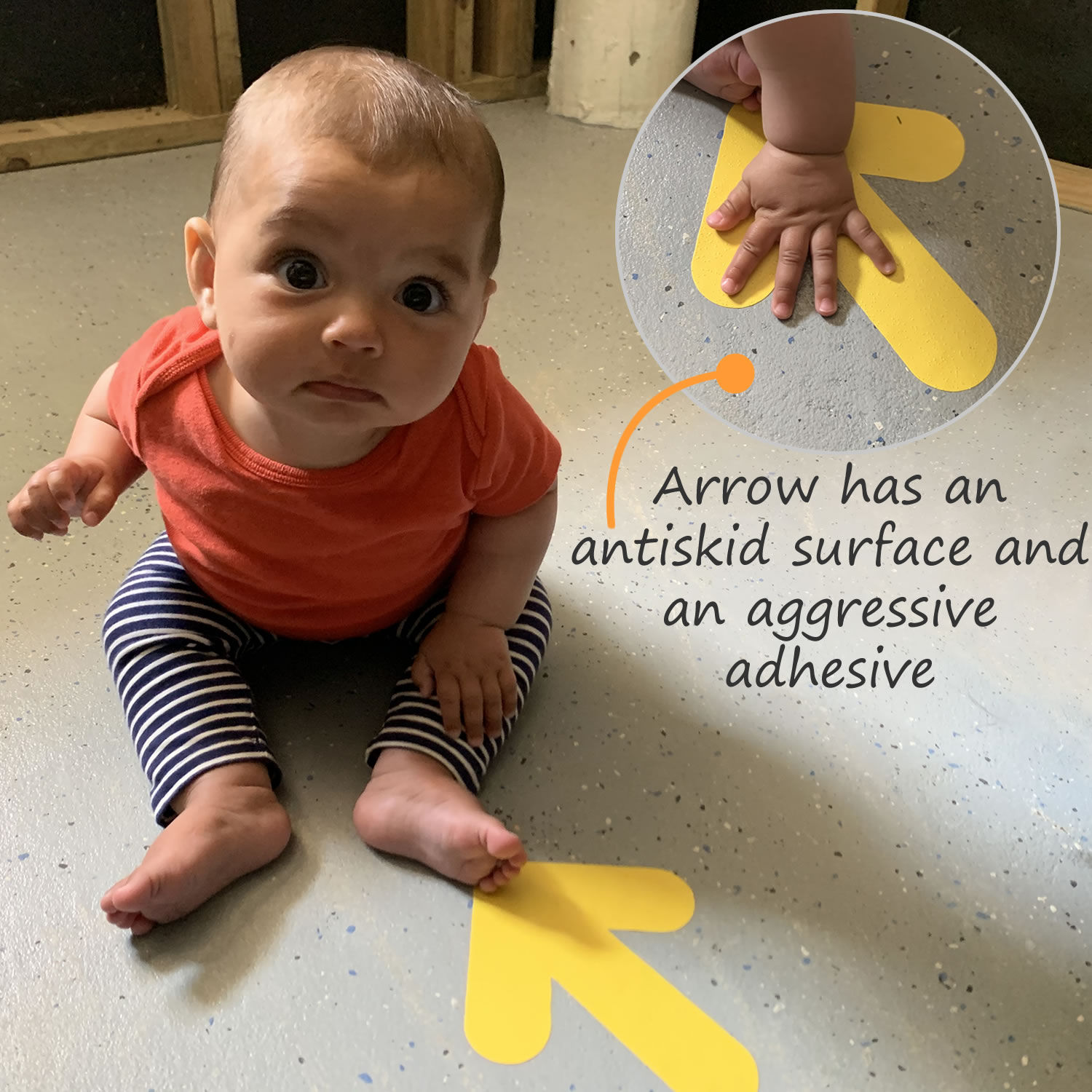 Design a path for foot traffic on your property using arrow stickers for floor.