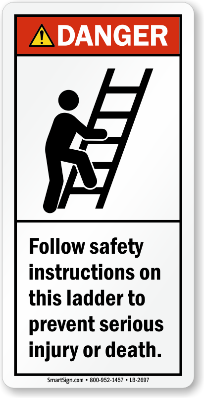 Failure to follow ladder safety instructions may lead to serious fall accidents. Make workers aware of the danger by deploying this ANSI Danger Ladder label.
