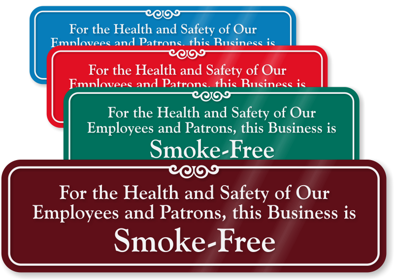 Posting this Showcase Wall sign lets all visitors know that for the health and the safety of employees and patrons, the building is a smoke free zone. Elegantly designed and available in a range of designer colors, this sign is guaranteed to provide an upscale look to your décor.