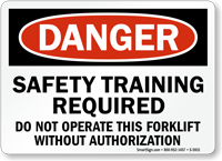 Install our OSHA Danger Sign to warn everyone that safety training and authorization is a must to operate the forklift.