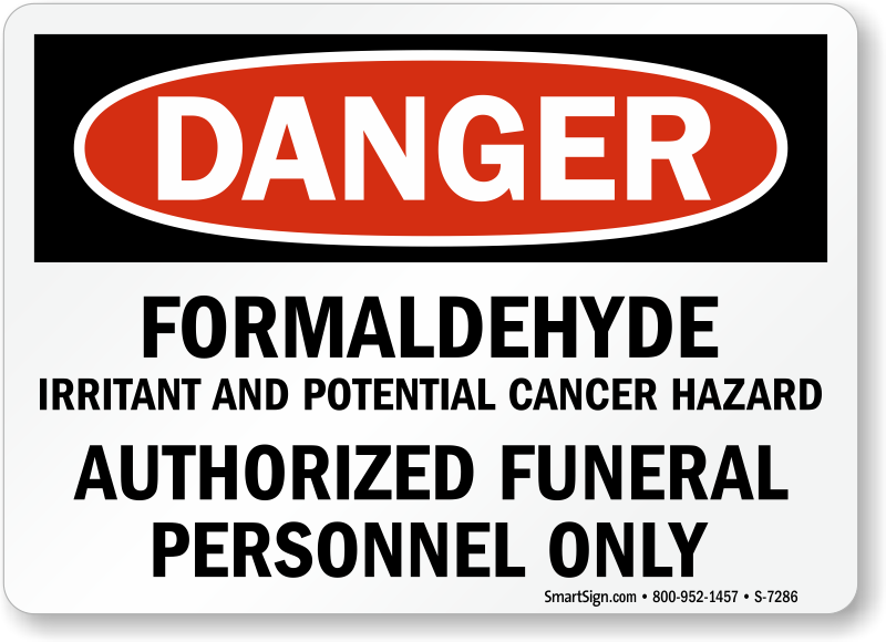 Funeral homes present a variety of occupational hazards, one being the use of hazardous formaldehyde as embalmer for preserving. Warn employees against formaldehyde and allow only authorized funeral personnel to handle the chemical.