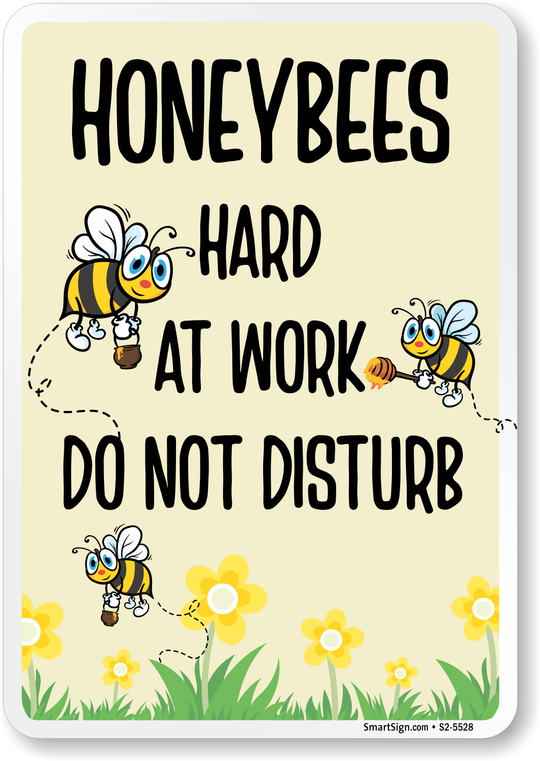 Install this 'Honeybees Hard At Work Do Not Disturb' sign to keep both your honeybees and your community safe.