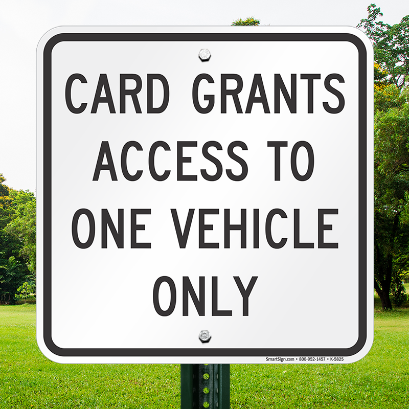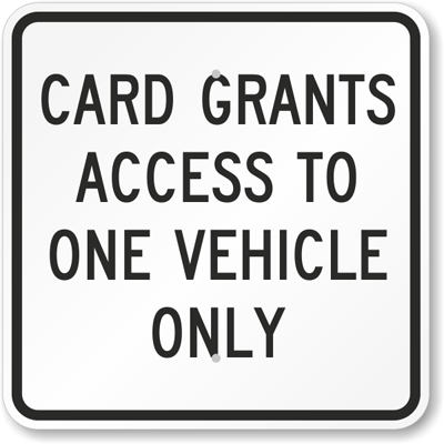 Vehicle Only Sign: Card Grants Access To One Vehicle Only K-5825 Learn More...