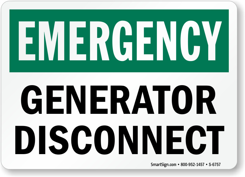 Mark generator disconnect by installing this high visibility Emergency Sign. Rounded edges prevent fraying and increase the durability of the sign.