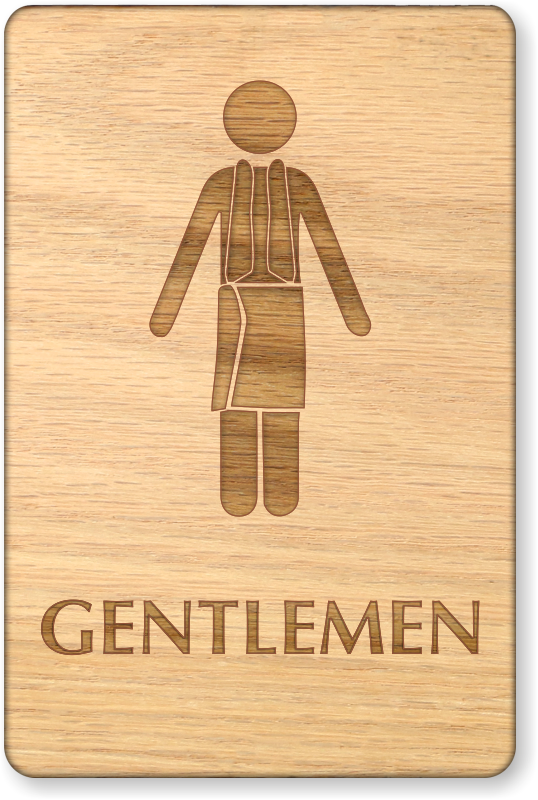Get creative with bathroom signs. Get this wooden restroom sign (with women in towel symbol) to mark bathrooms for women.