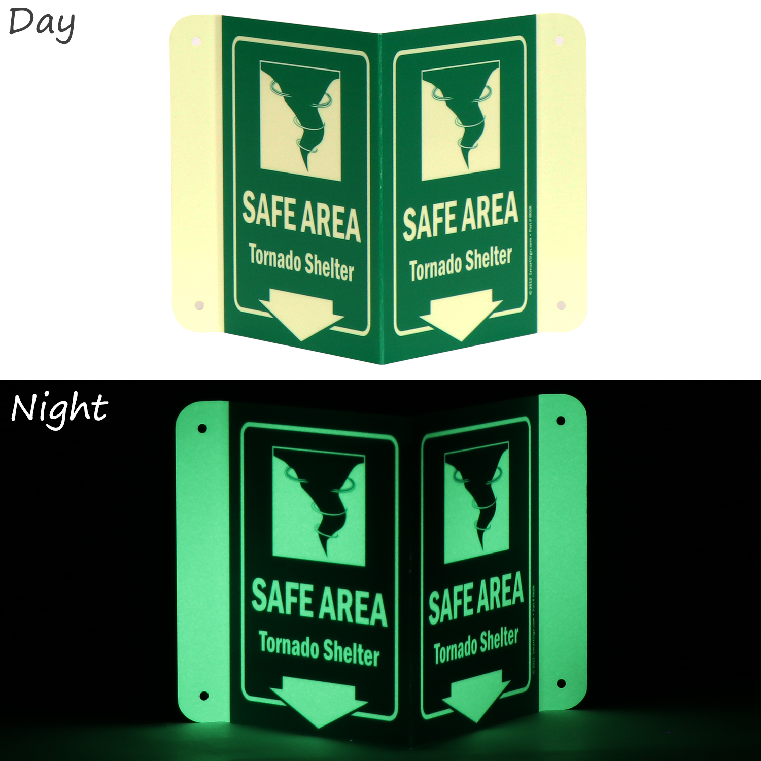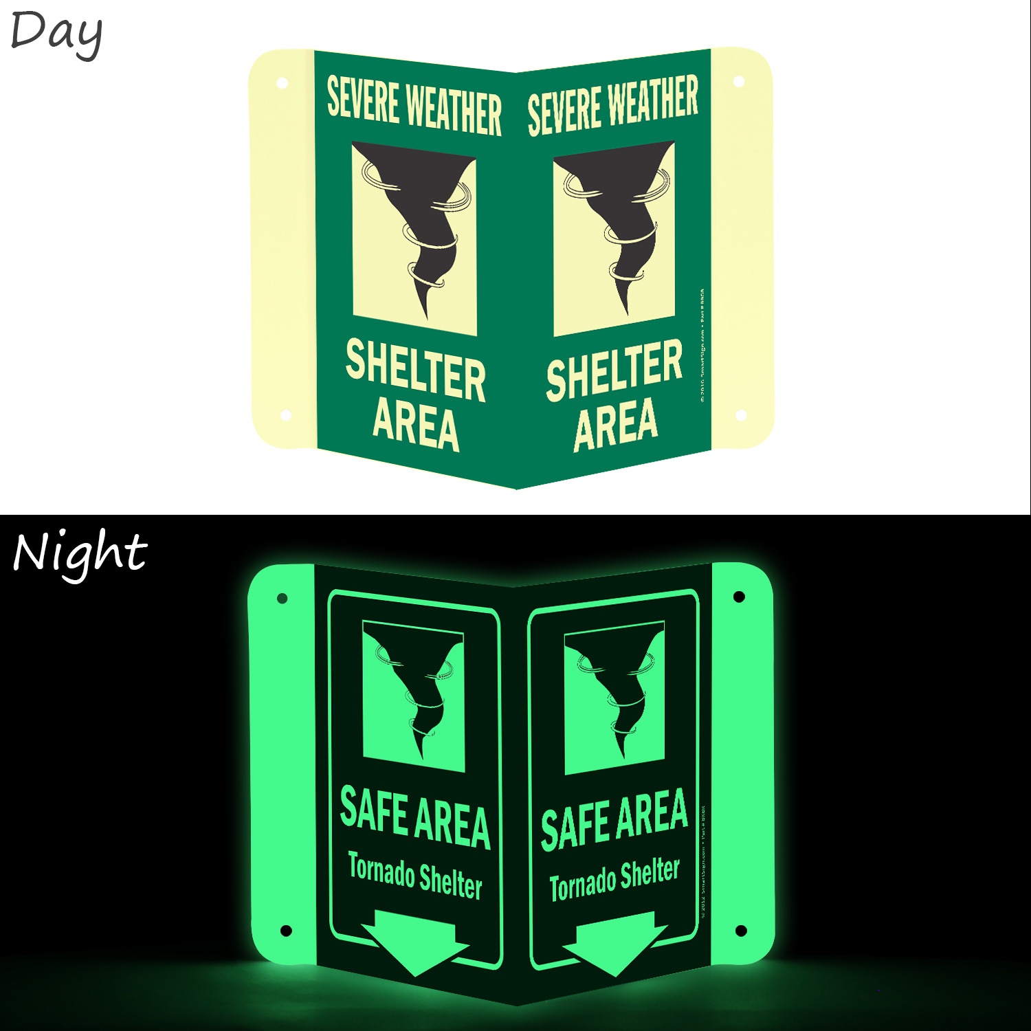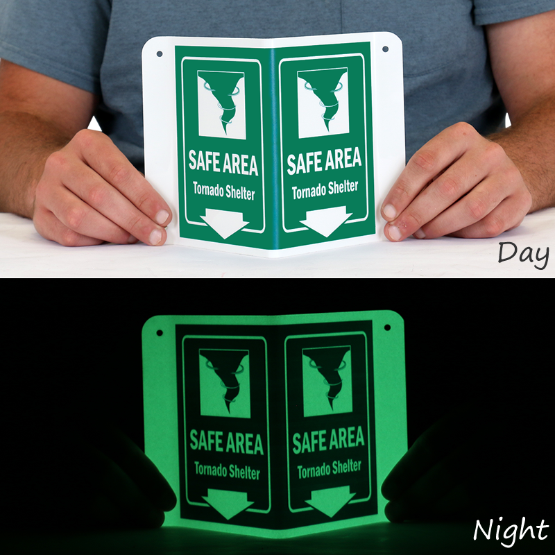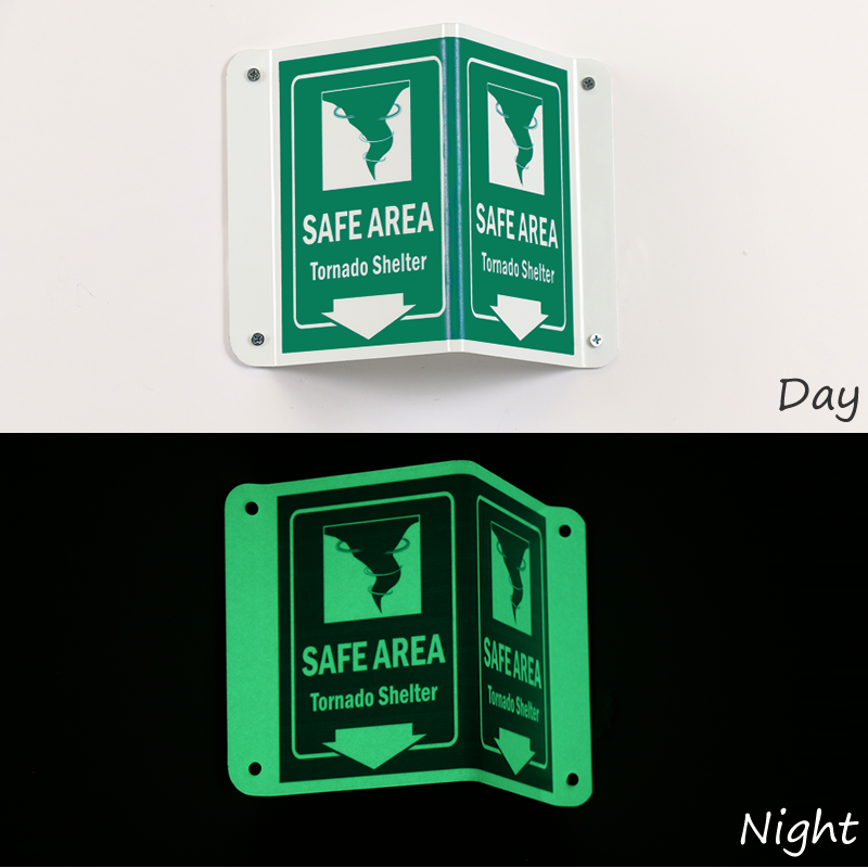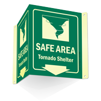 Install this Glow-in-Dark Projecting Emergency Shelter Area Sign zeroing in on a rescue area. Signs can save lives timely.