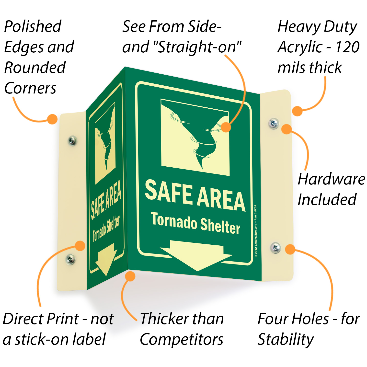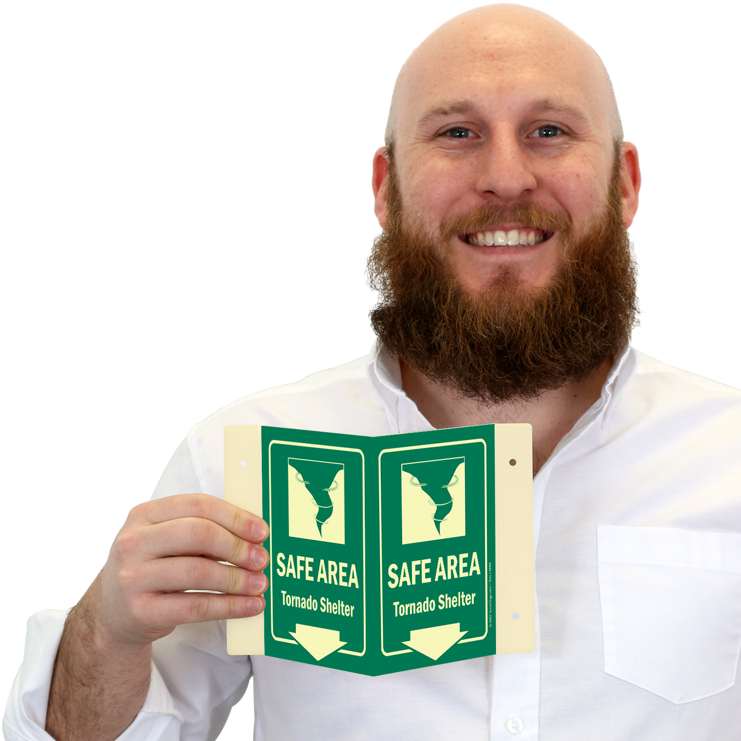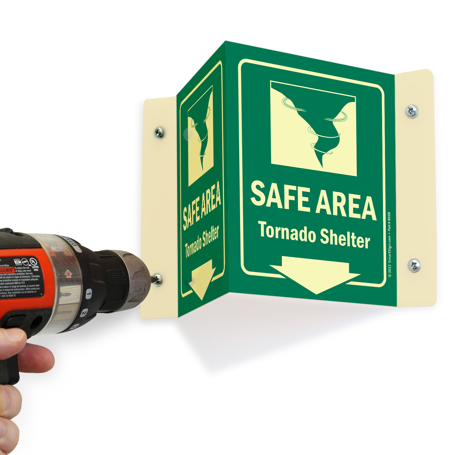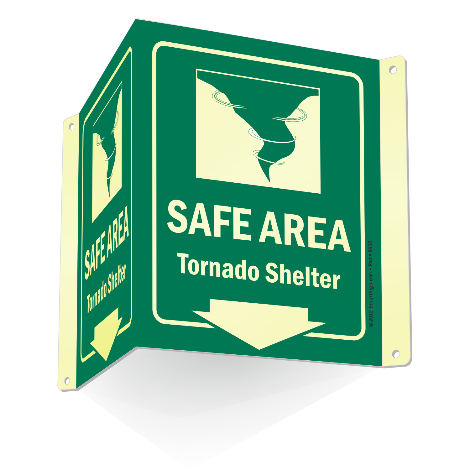 Install this Glow-in-Dark Projecting Emergency Shelter Area Sign zeroing in on a rescue area. Signs can save lives timely.
