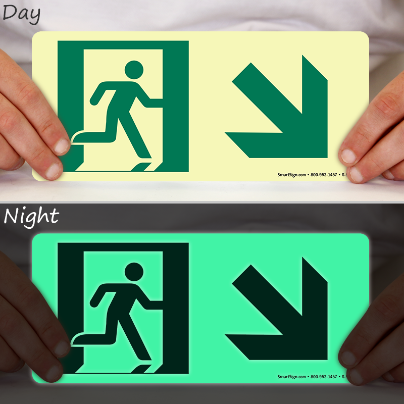 - Glow-in-the-dark sign can be seen in a blackout or an emergency situation.