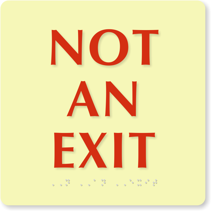 Every second counts when you need to exit the building. Don't let anyone make a deadly mistake - mark your Non-Exit doors by posting a glowing TactileTouchâ„¢ Not an Exit Sign on every non-exit doorway.