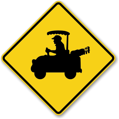 We measure the Golf Cart sign as if it were a square. Measuring the sign from the top tip to the bottom tip, however, would give a height that is about 50% greater than our dimension below (which measures each side).