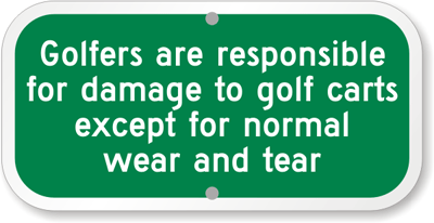 Golf Course Sign: Golfers Are Responsible For Damage To Golf Carts Except For Normal Wear And Tear K-9475 Learn More...